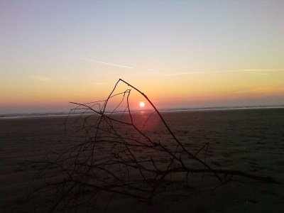 Golden skies threw diamond sparkles over the sea and a path of light across the sand.