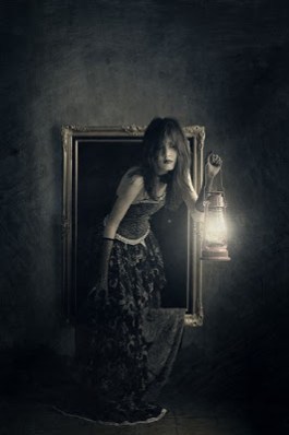 I sighed and blew out the candle. The gilded frame and its mysterious, dark alleys sank into gloom. I turned, only twisting back when an unexpected bobbing light emanated across the room.