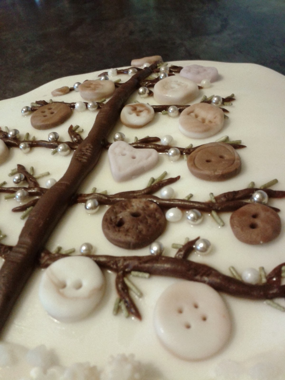 - Follow instructions here to make your buttons (Pinterest is so useful!) In case the post is ever removed…roll fondant then cut out buttons using a tiny circle cookie cutter or the end of icing tips, add the holes using a cocktail stick, then decorate pressing the star end of icing tips against the buttons, or pressing a fork onto them, or indenting with whatever pattern you like.