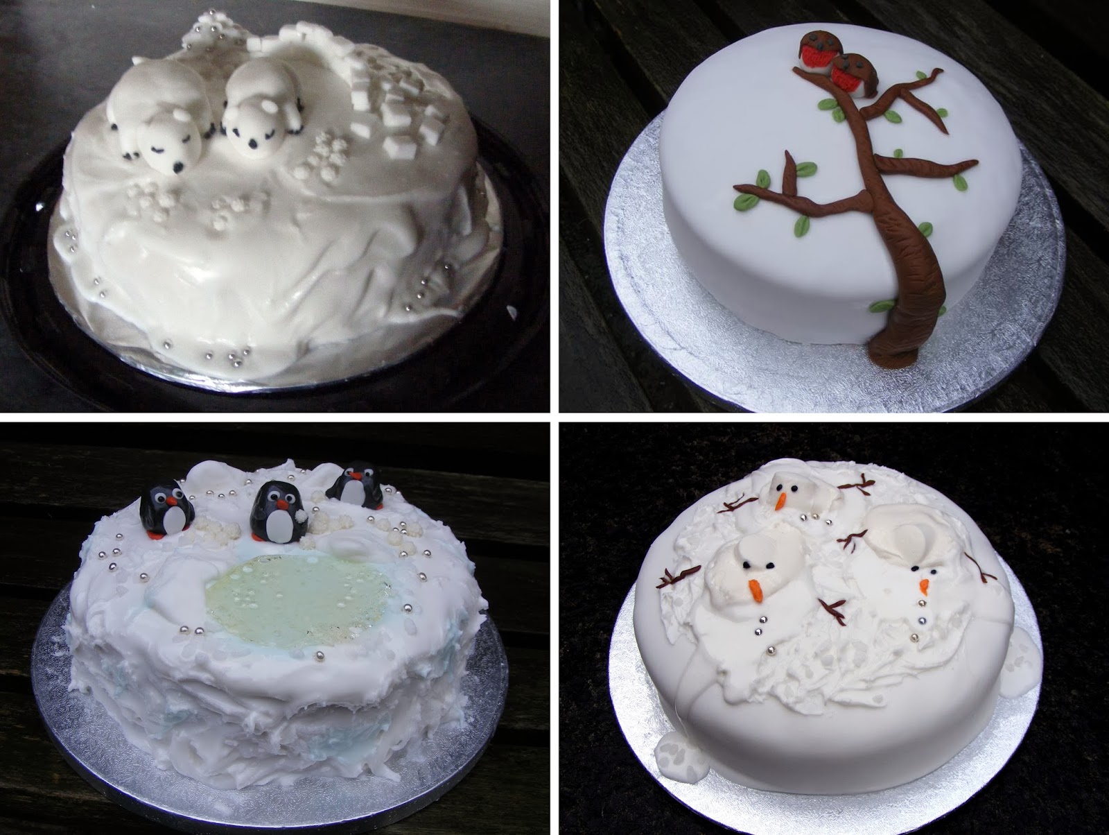 Polar bears, robins, penguins and melting snowmen cakes decorated by Lisa Shambrook