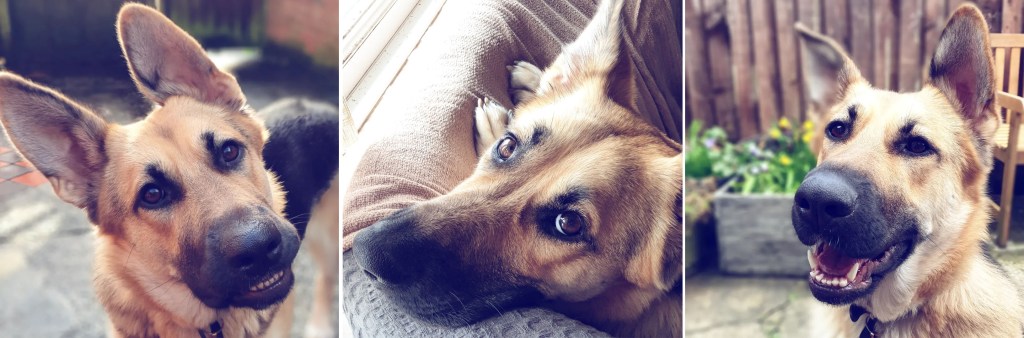 All-in-all, Easter weekend has just gone and we’ve had Lexi for a year now. She’s filled that puppy-shaped gap in our hearts, and I imagine both Roxy and Kira are watching us with mirth, asking us what we think we’ve got ourselves into with Lexi! She’s exhausted and delighted us. She’s real pain in the arse at times, but when she gazes up at me with those huge brown puppy-dog eyes I melt. She cuddles close, gets excited and nibbles because she just has too much love to give. I don’t want a perfect pup… I’m very happy with our spirited, mischievous bundle of chaos!