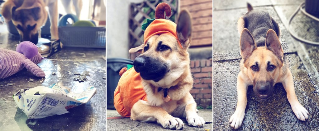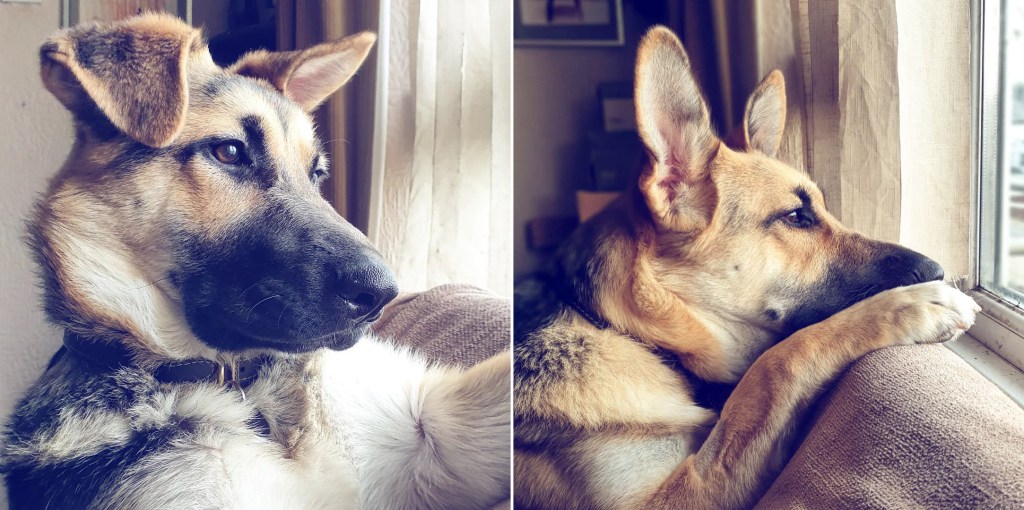 Our son and daughter-in-law visited with their two dogs, Buzz, a tiny black pug, and Flynn, another GSD. We were concerned as to how Lexi would react to their dogs, but amazingly, she made friends quickly, but she was demanding with Flynn. She wanted to play with him and no one else and constantly barked in his face if he didn’t play with her. He rightly put her in her place a few times, but they did love playing rough together!