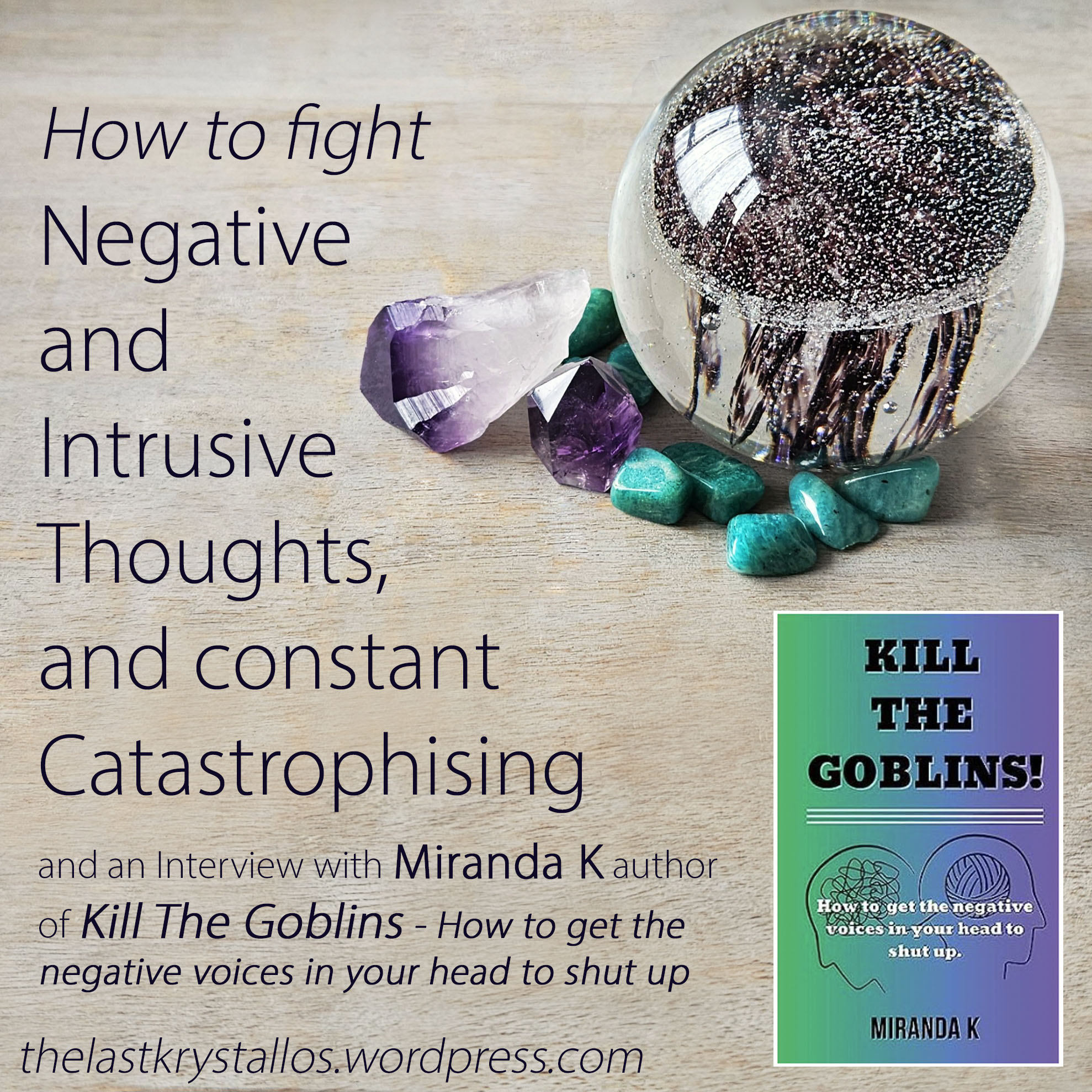 I’m going to talk a bit about negative thoughts and how they affect you, and introduce you to Miranda K’s book Kill The Goblins: How to get the voices in your head to shut up, because I’ve suffered with my brain spiralling out of control since I was a child right through to late adulthood. Only recently have I found ways to combat the goblins, the brain weasels, the spectres, the ghouls, whatever you call them, in my head.