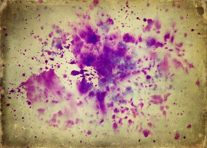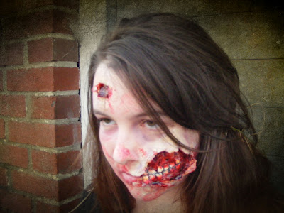 With recent blood besprent.