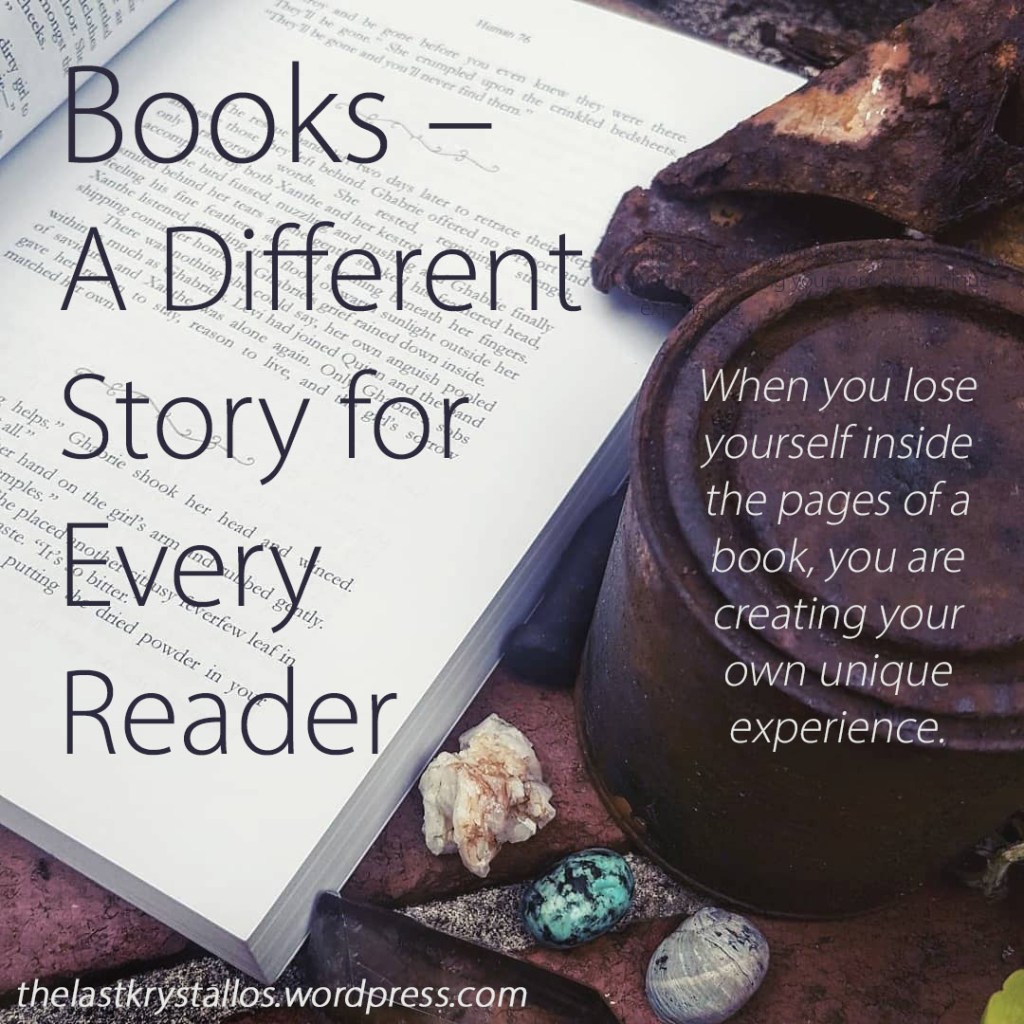 Books are magic, they create worlds in your head, and if it’s different to someone else’s interpretation that’s okay. Your reading experience is yours, it belongs to you. And every book out there is a new world for whoever picks it up! What beauty there lies in that!